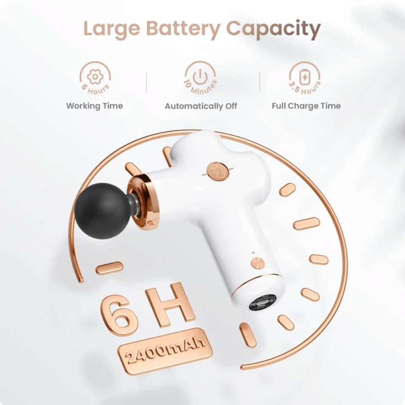 Built-in 2400mAh rechargeable long-lasting battery, last from 4 to 6 hours with once fully charge. Accurate perceive massage, 10 minutes automatically off function.